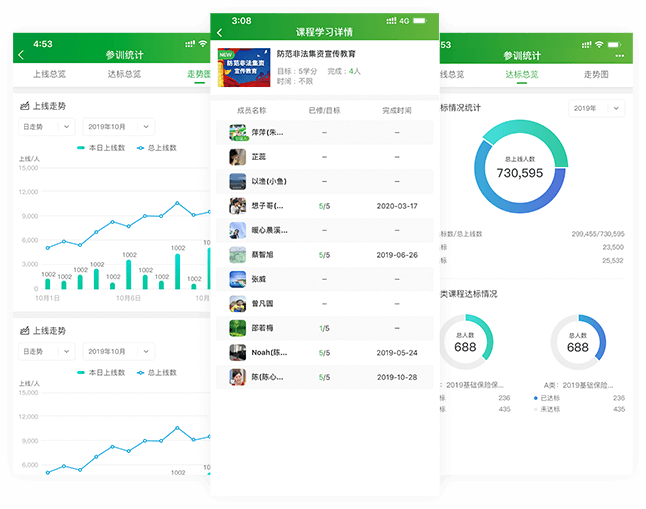 学习平台采用数据埋点技术,有效追踪学习轨迹,存储培训档案,学员学习的培训类型、培训内容、培训时间、达标情况一目了然。